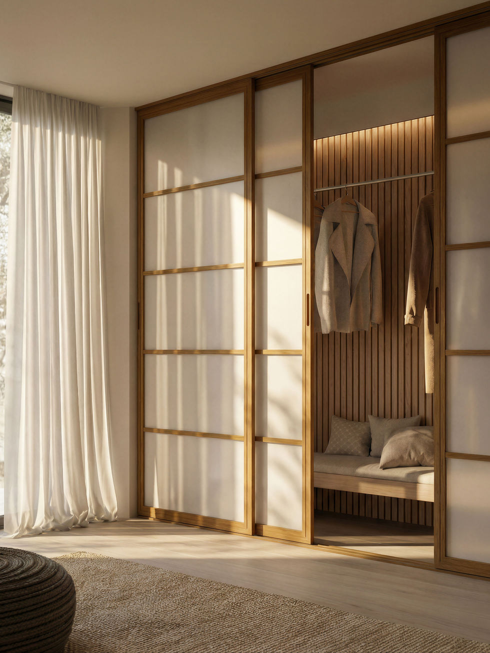 Die Shoji M50 Raumtrenner bringen Struktur und Ruhe in jeden Raum. Mit ihrem feinen Holzrahmen und dem lichtdurchlässigen Washi-Papier schaffen sie klare Zonen, ohne Helligkeit oder Offenheit zu verlieren.